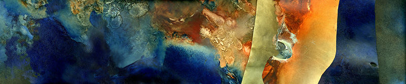 Morph, as installation, brings together art works from different series and techniques. Winter, a long and narrow graphite drawing on paper, marks a diagonal line at the center of the space. Worked every day as an elaborate organic form that advances along a narrow path, it was started at a winter solstice and continued to the following spring equinox. Two big-format monoprints on canvas generate an architectonic feature in the gallery space, and the same printing technique is applied to produce some wordless Log Books where rusted pages evoke geological strata or archaeological artifacts. Paintings and drawings on parchment from the Codex series – like the ancient scrolls written on animal skins – hang as thin layers of organic forms. As metaphor of the living skin of the planet, they speak of fragility and endurance, of the endless flow of life, a single organism in constant metamorphosis.